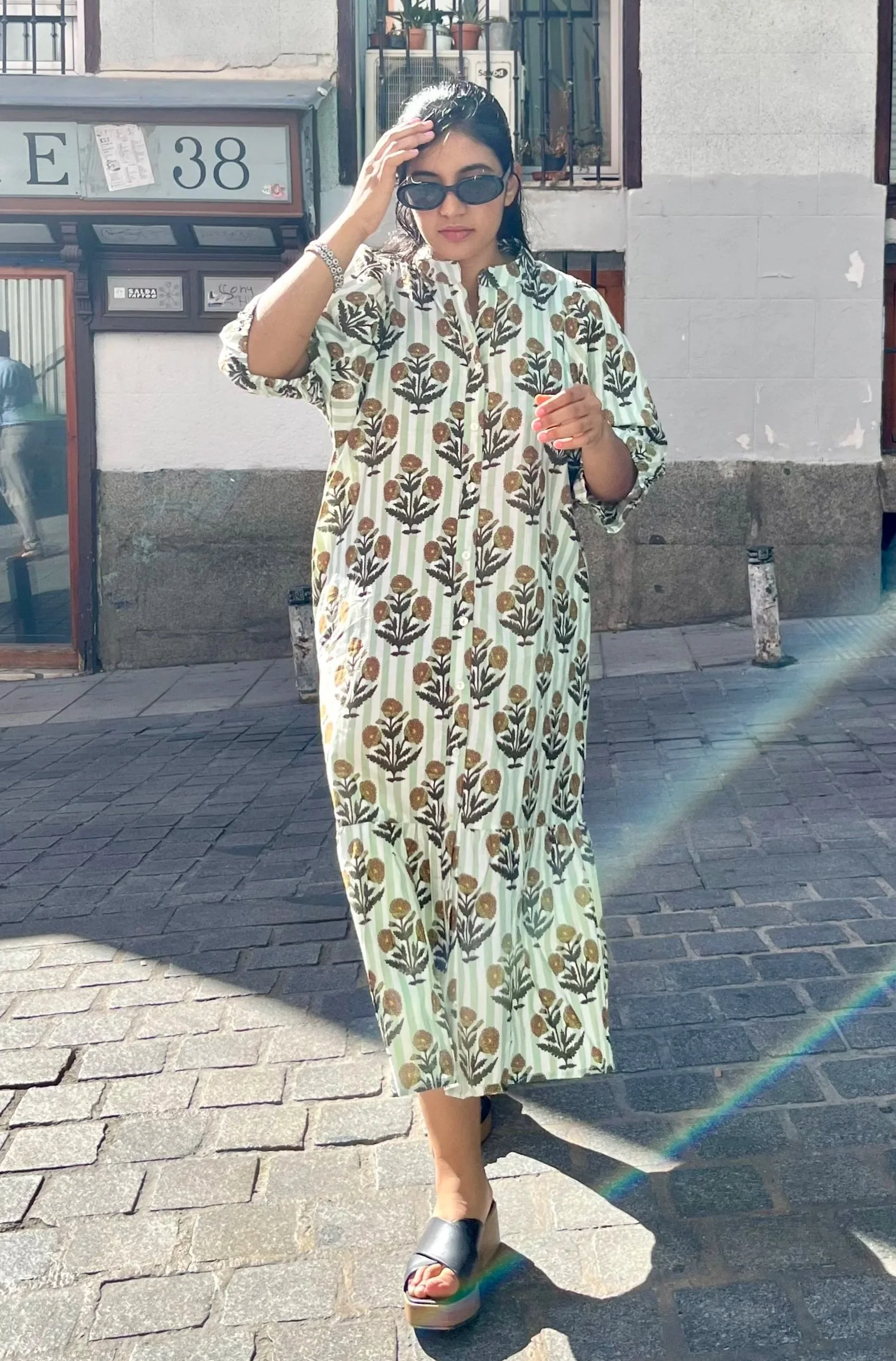 Toda nuestra colección de ropa casual y accesorios: como vestidos, tops, faldas y bolsos, se inspiran en los diseños principalmente de India. Como ya sabes, somos amantes del color y los estampados; y el diseño indio encajó a la perfección. En algunos de nuestros artículos, empleamos la técnica de blockprint: un método artesanal de estampado de patrones en telas, papel u otros materiales, que consiste en tallar diseños a mano en bloques de madera, sumergirlos en tintes naturales o pigmentos, y luego presionarlos sobre la superficie para crear un diseño.